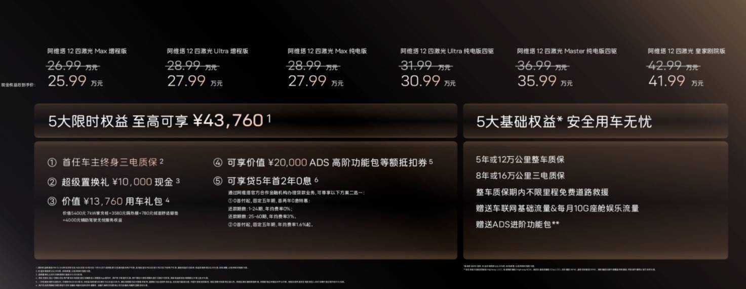 阿维塔12四激光版的上市,不仅是一款新车的发布,更是智能汽车市场"普惠时代"的开端。当其他品牌还在把激光雷达当"高端配置"漫天要价时,阿维塔直接将其纳入全系标配,这份底气源于华为六年技术共研的沉淀,更藏着对消费者需求的深刻洞察——智能不该是奢侈品,而应是每一位车主都能享有的安全保障。