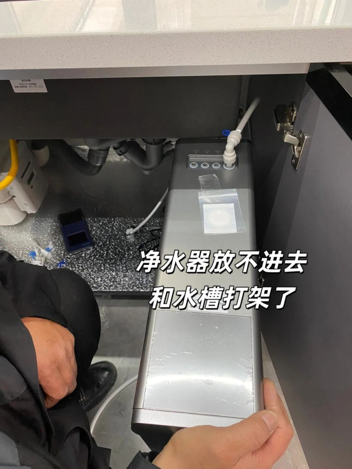 净水器得装在厨房水槽台盆下面,不仅要预留足够的位置,还得有独立电源和排水口,有些新房子预留的空间就不够。